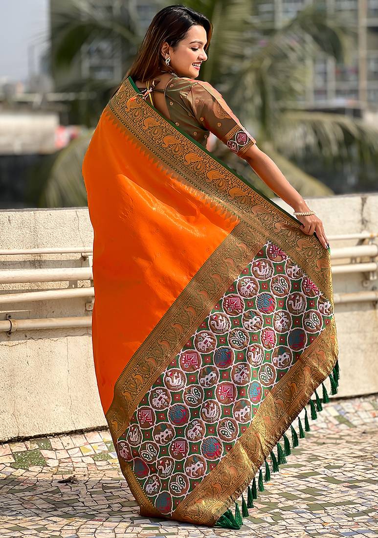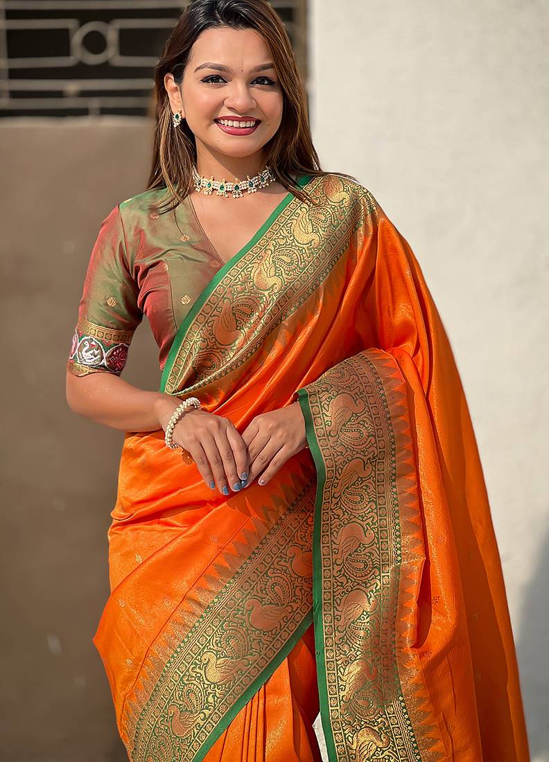 | Product Name | Orange Woven Self Design Tissue Silk Blend Patola Saree With Blouse | |
