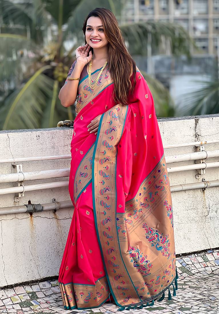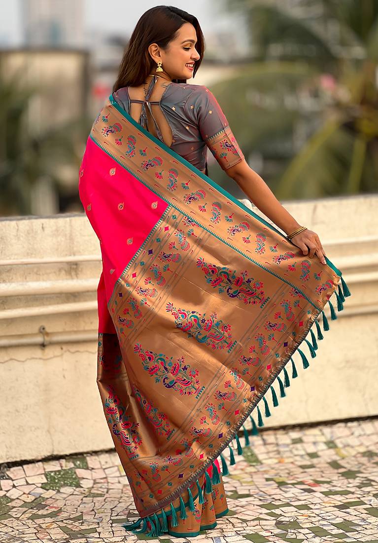 | Product Name | Pink Woven Self Design Pure Silk Paithani Saree With Blouse | |