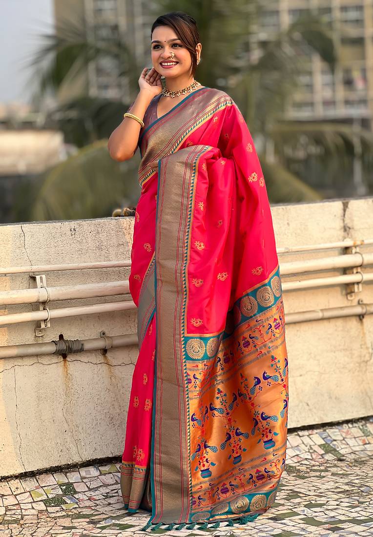 | Product Name | Pink Woven Self Design Pure Silk Paithani Saree With Blouse | |