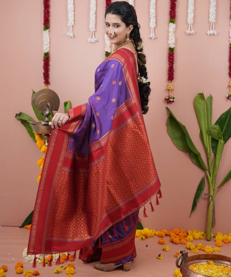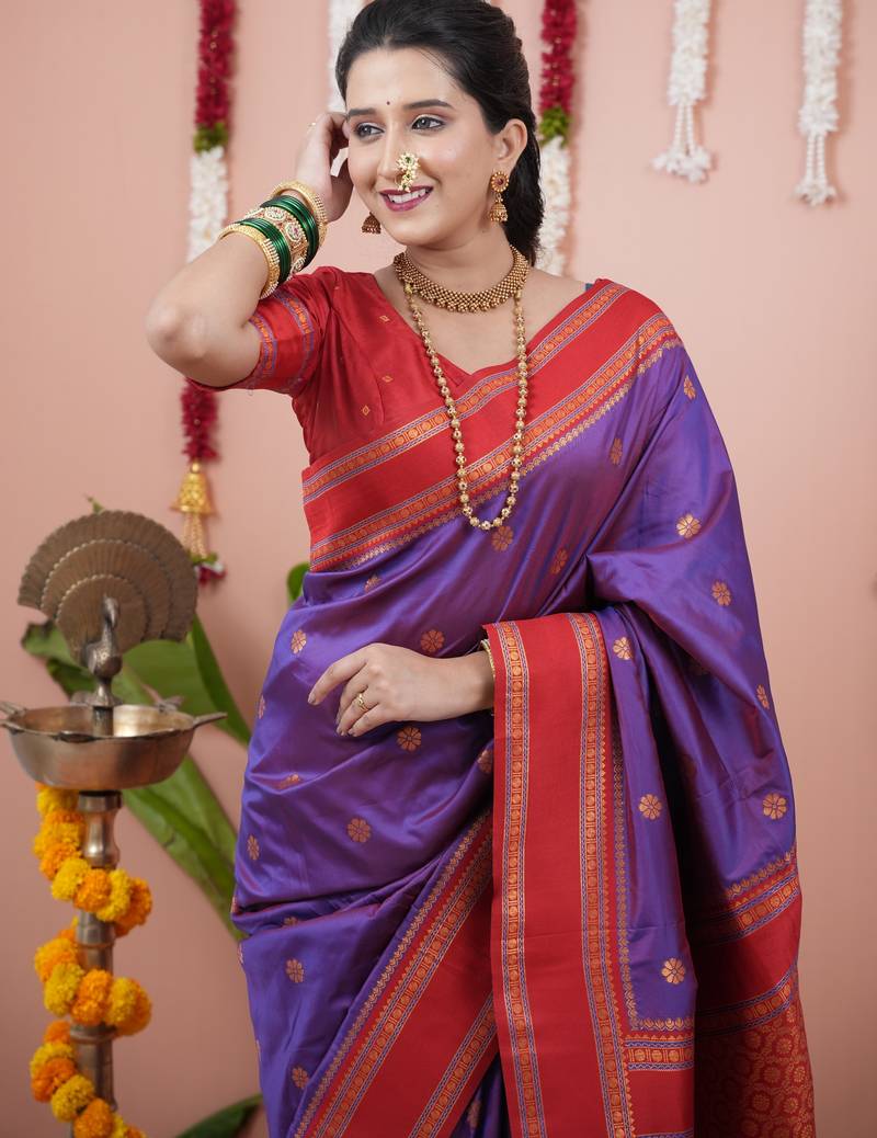 | Product Name | Purple Floral, Zari Work Soft Silk Saree With Blouse | |
