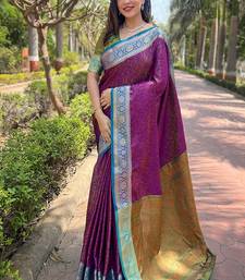 Purple woven self design pashmina silk saree with blouse