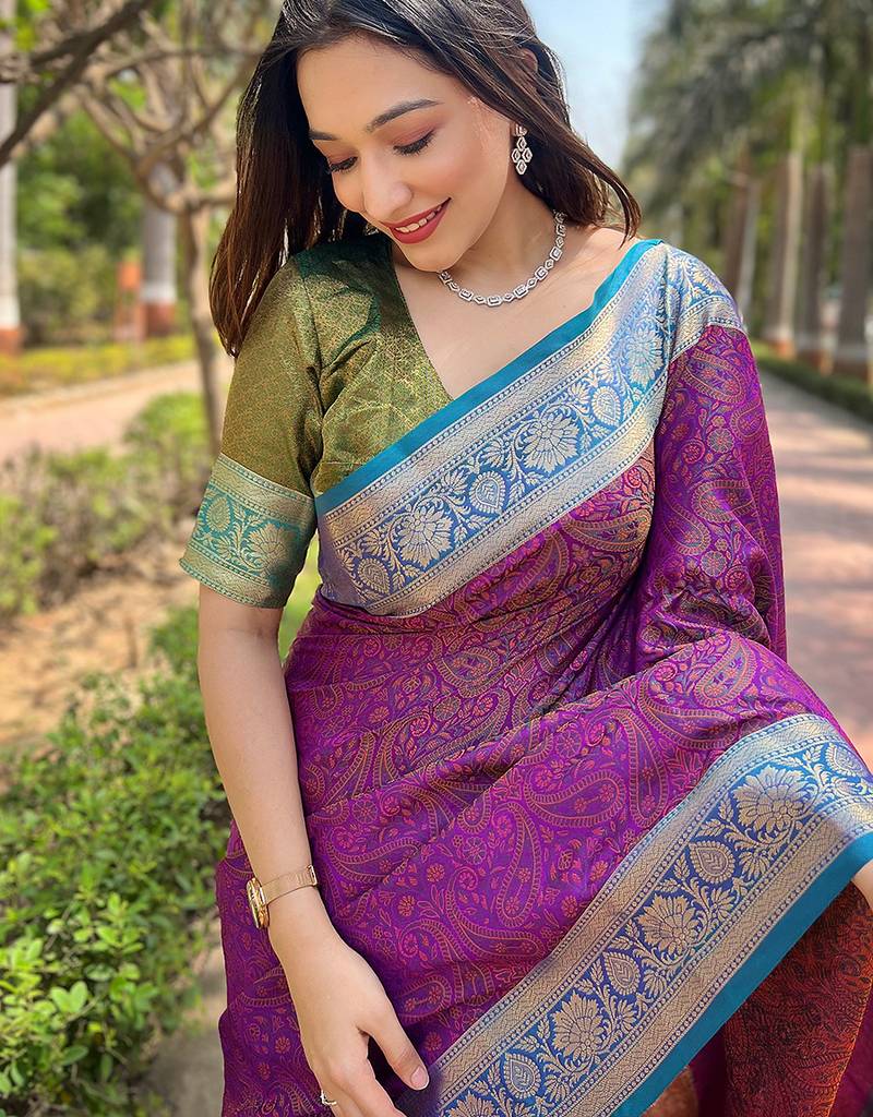 | Product Name | Purple Woven Self Design Pashmina Silk Saree With Blouse | |