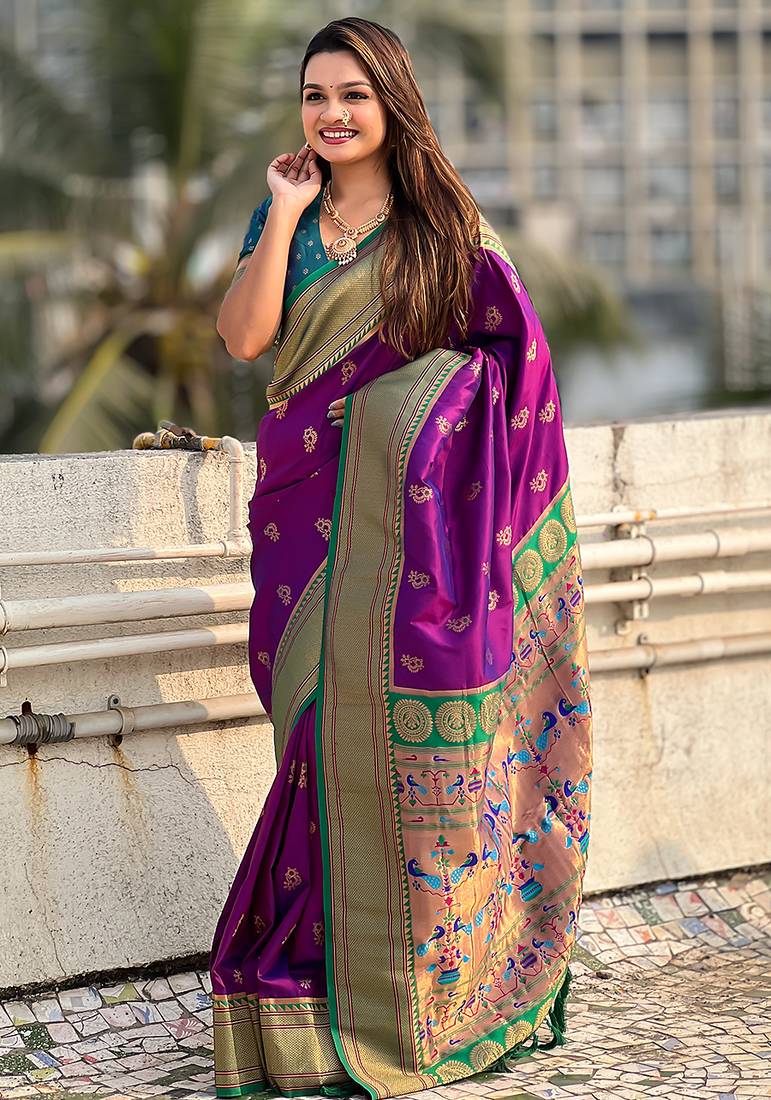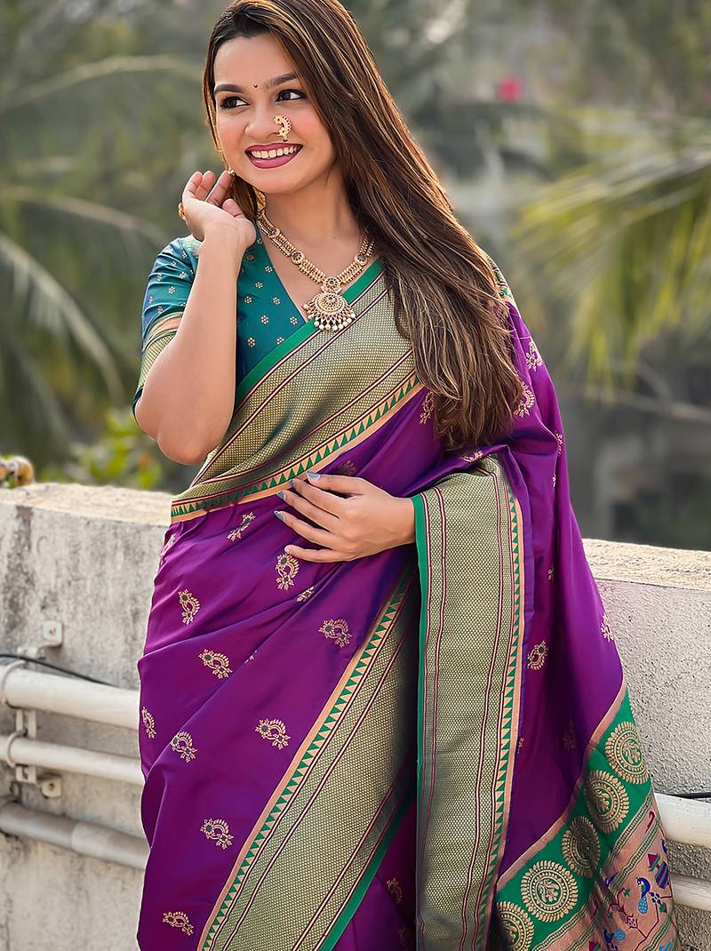 | Product Name | Purple Woven Self Design Pure Silk Paithani Saree With Blouse | |