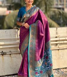 Purple woven self design tissue silk blend patola saree with blouse