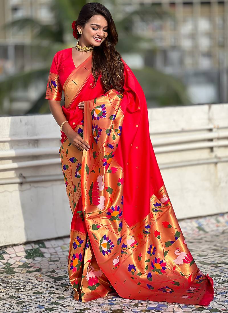 | Product Name | Red Woven Self Design Pure Silk Paithani Saree With Blouse | |