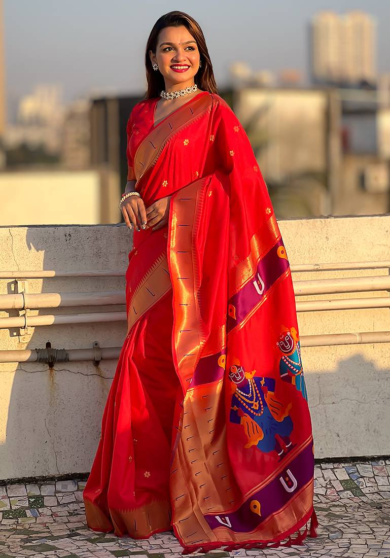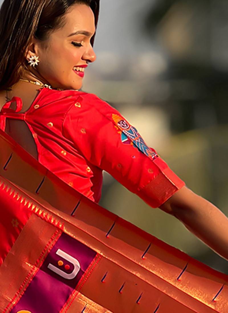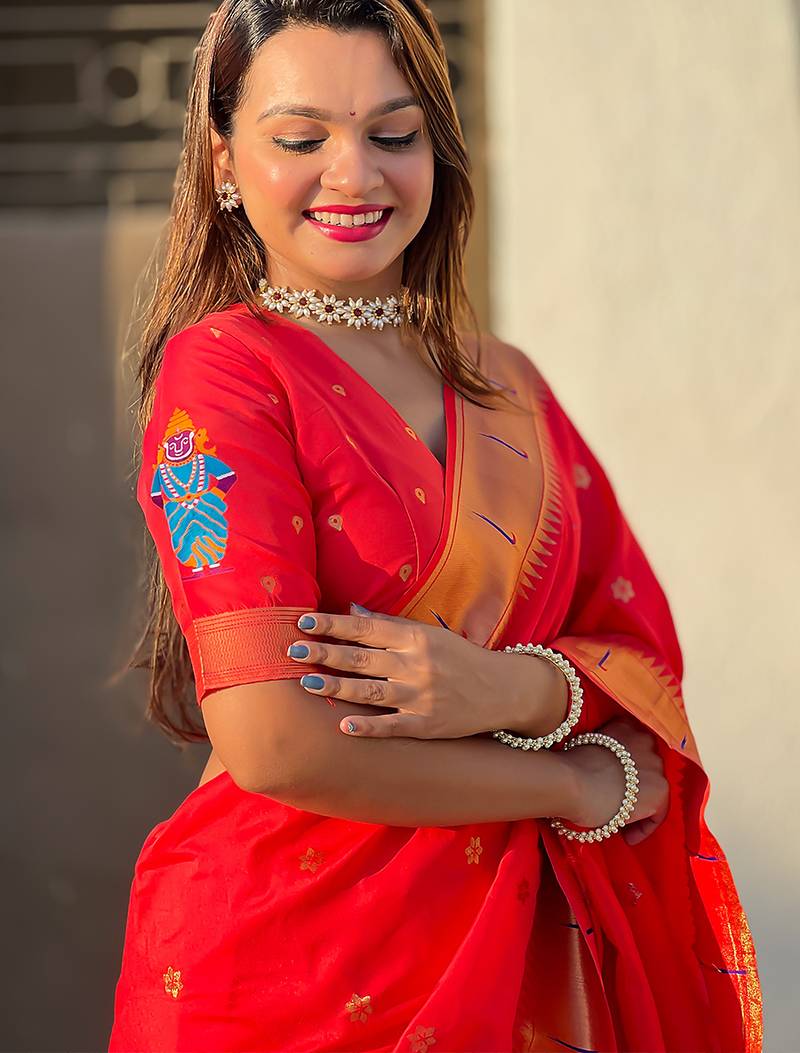 | Product Name | Red Woven Self Design Pure Silk Paithani Saree With Blouse | |