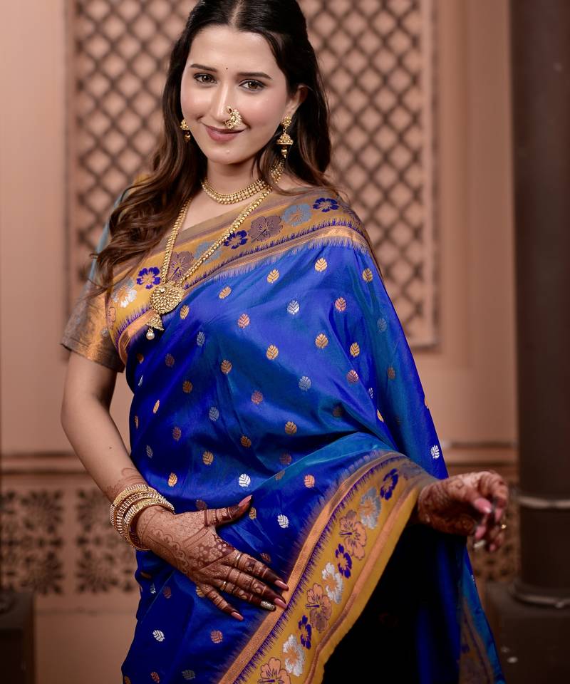 | Product Name | Royal Blue Floral, Zari Work Soft Silk Saree With Blouse | |
