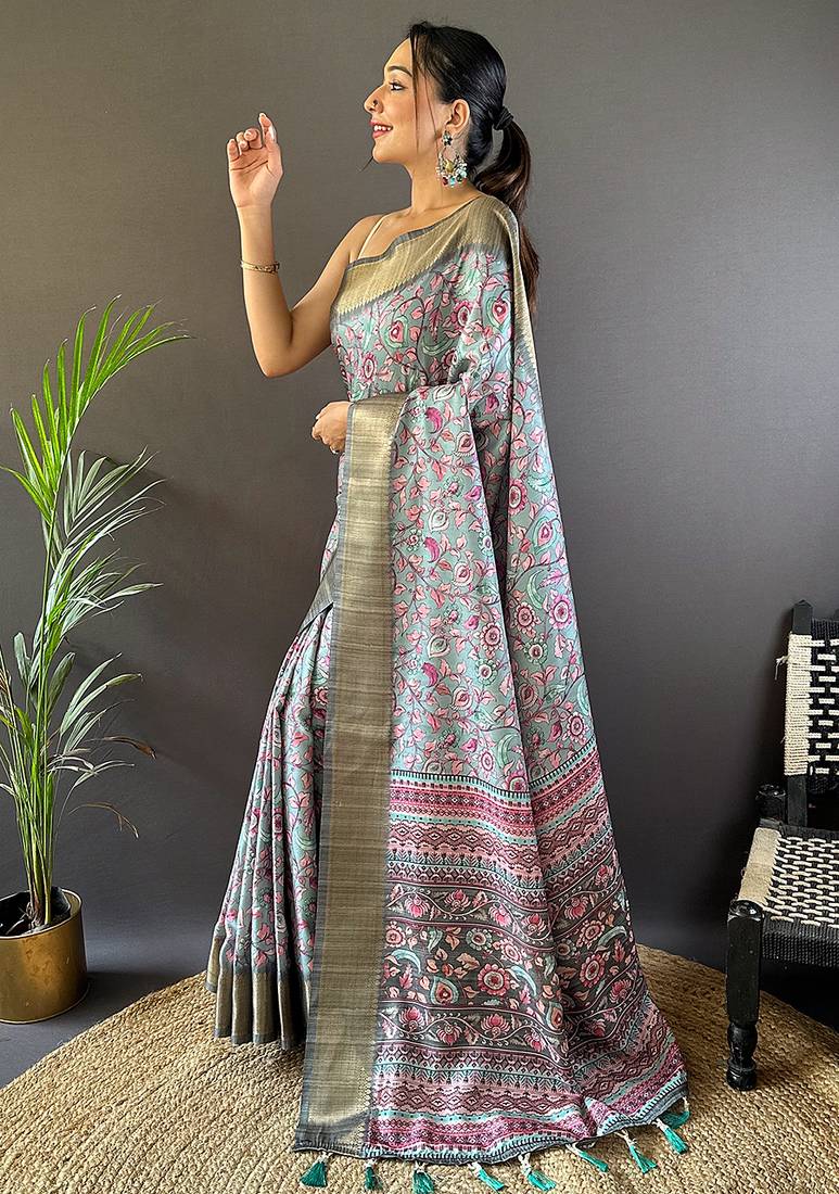 | Product Description | Soft Assam Silk Sarees With Kalamkari Prints All Over The Body Having Zari Woven Border On Both Sides Rich Kalamkari Digitally Printed Pallu. Paired With Printed Blouse. |