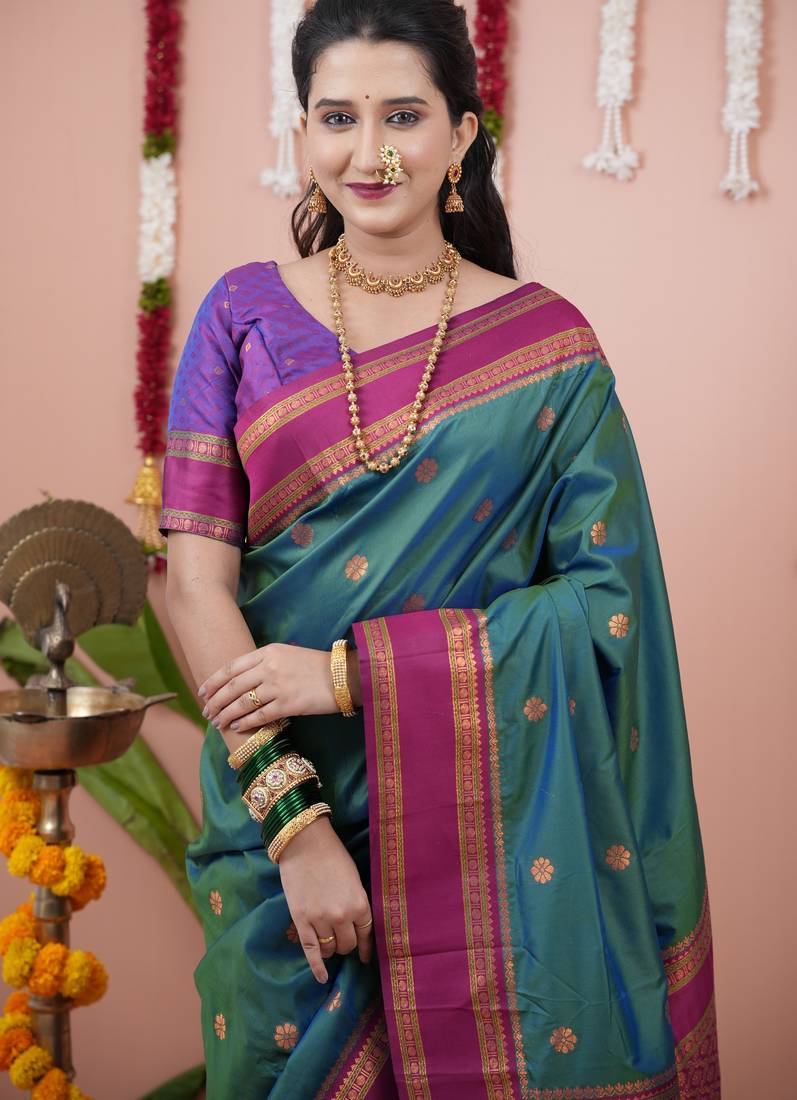 | Product Name | Teal Green Floral, Zari Work Soft Silk Saree With Blouse | |