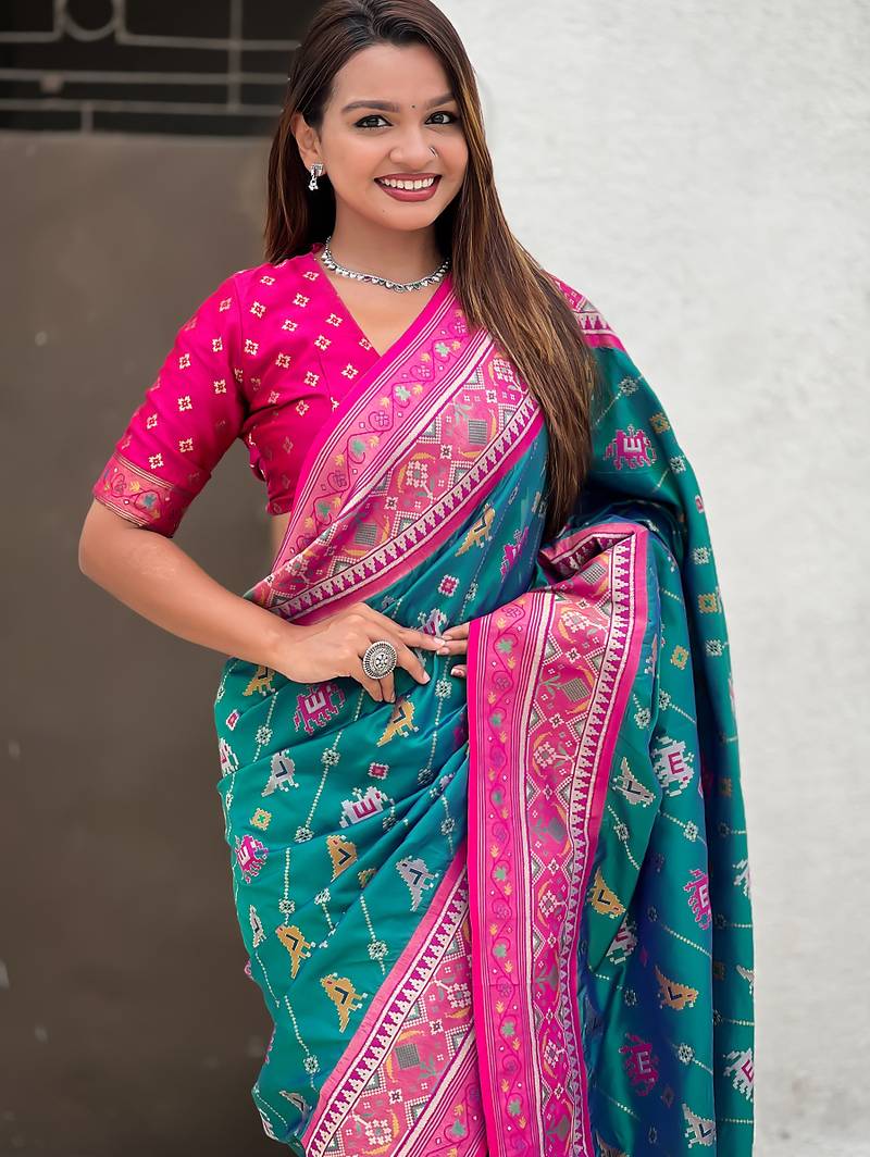 | Product Name | Teal Green Woven Self Design Silk Blend Patola Saree With Blouse | |