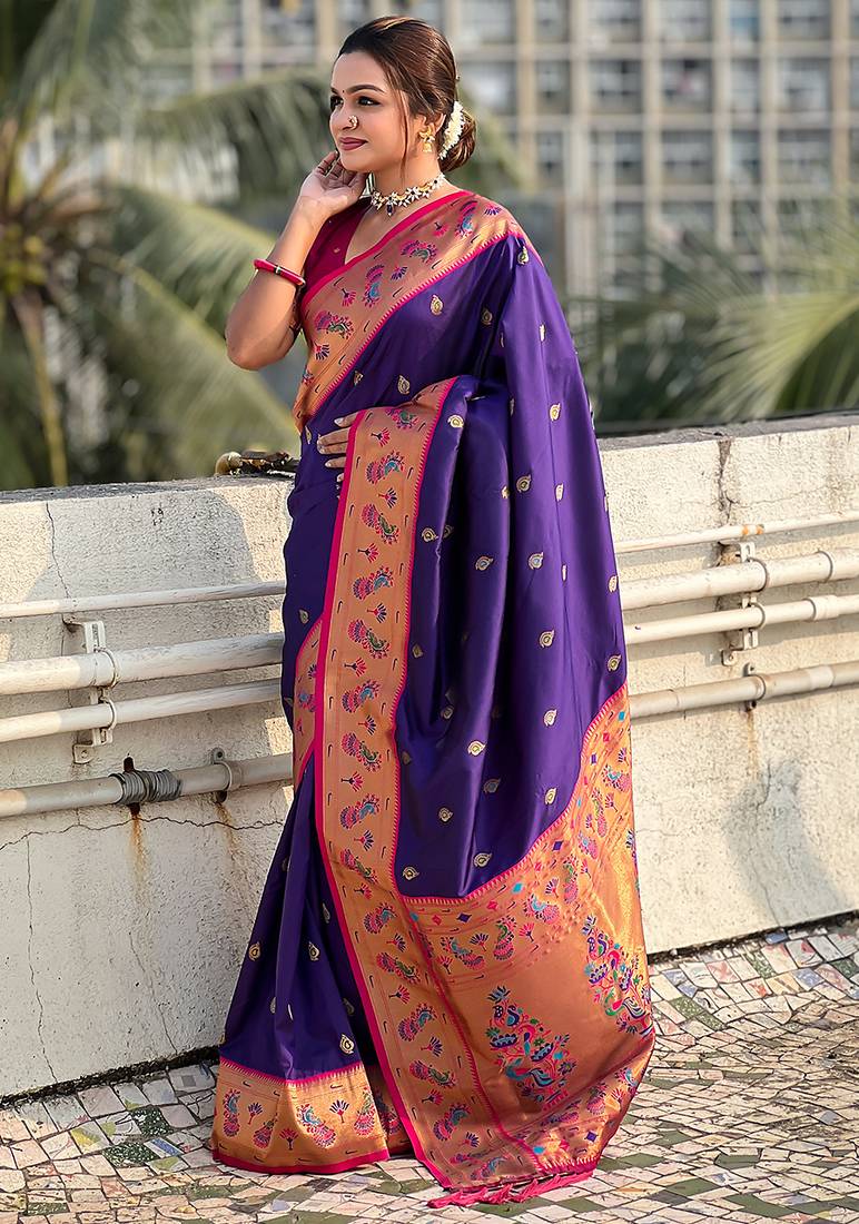 | Product Name | Violet Woven Self Design Pure Silk Paithani Saree With Blouse | |