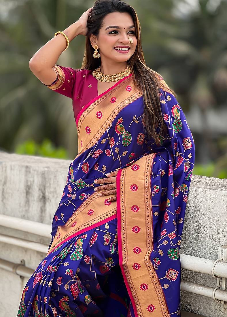 | Product Name | Violet Woven Self Design Pure Silk Paithani Saree With Blouse | |