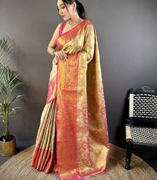 Yellow floral, zari woven kanjivaram tissue silk saree with blouse