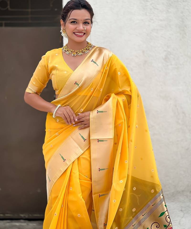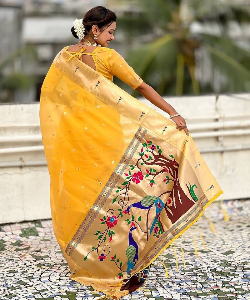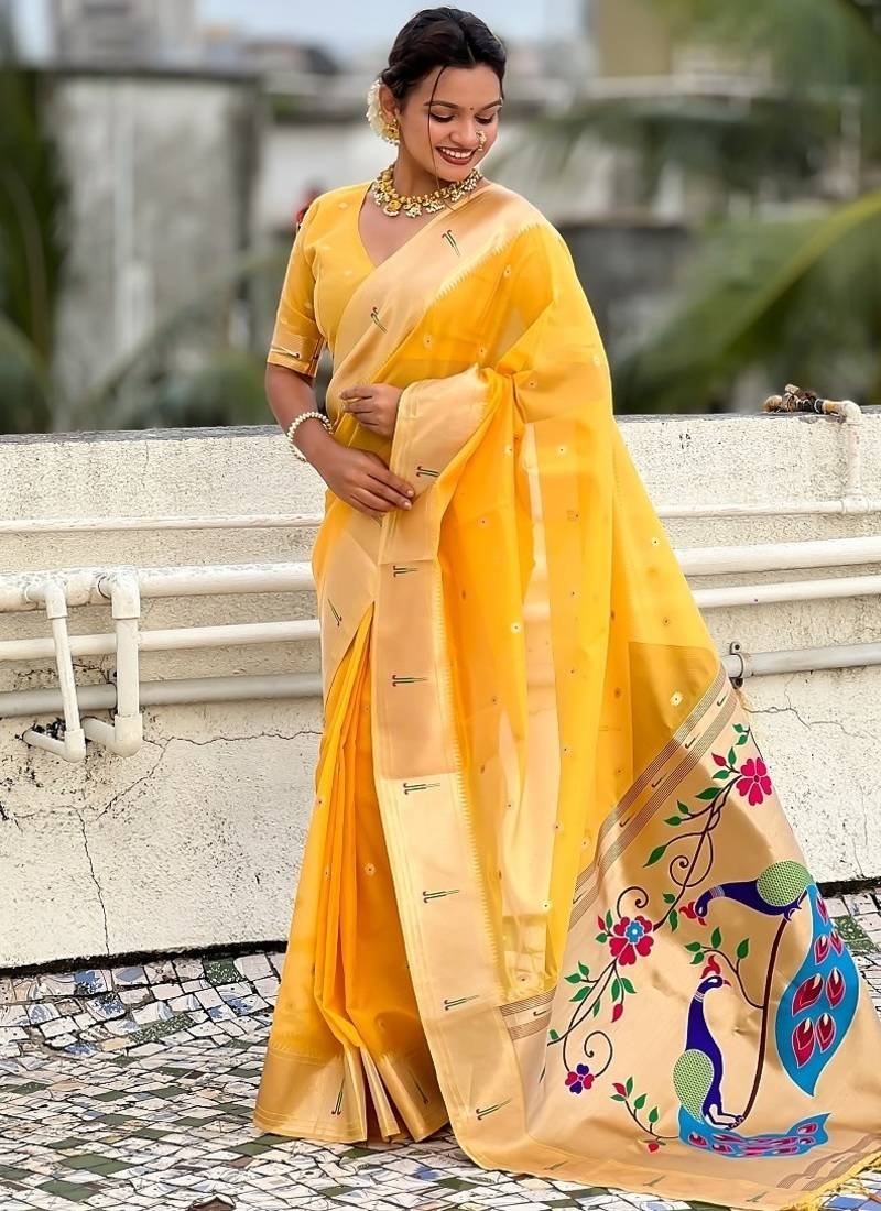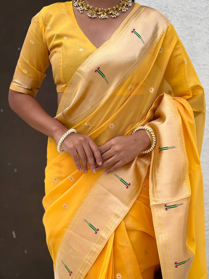 | Product Name | Yellow Woven Self Design Organza Paithani Saree With Blouse | |
