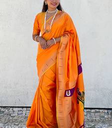 Yellow woven self design pure silk paithani saree with blouse