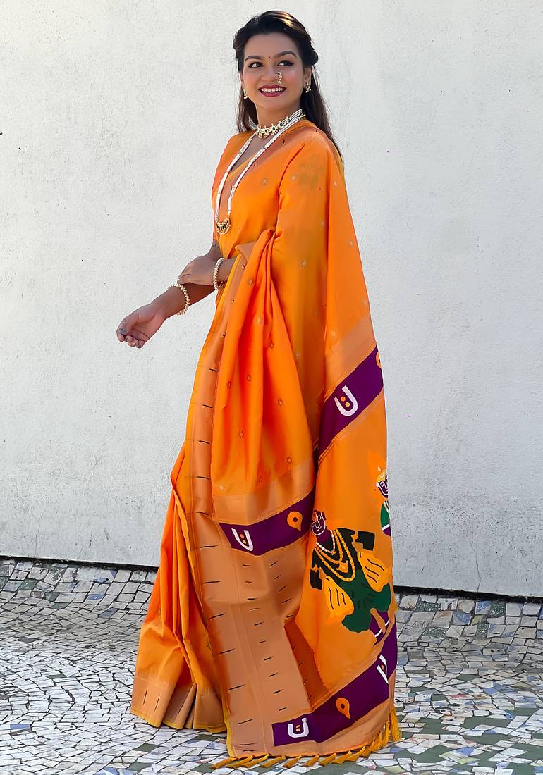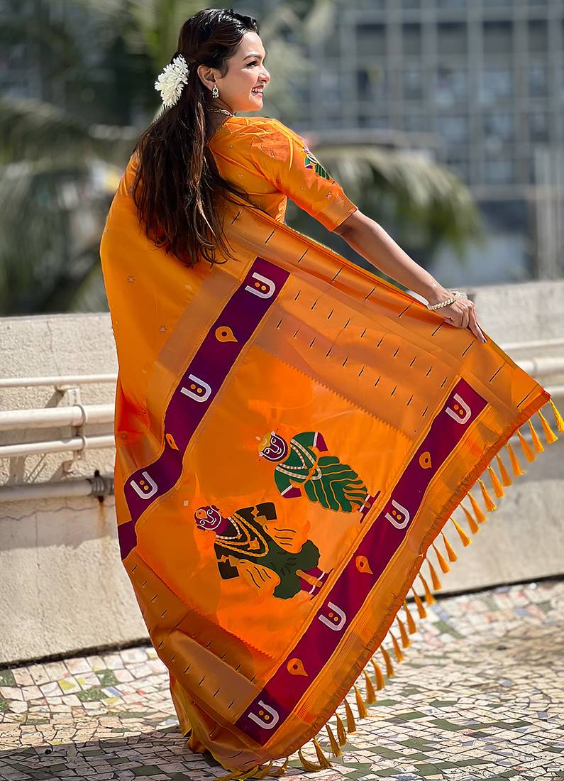 | Product Name | Yellow Woven Self Design Pure Silk Paithani Saree With Blouse | |