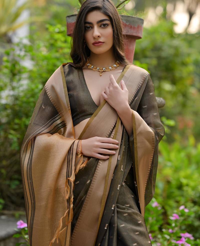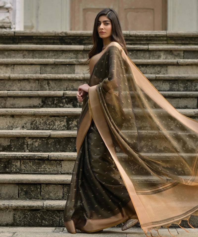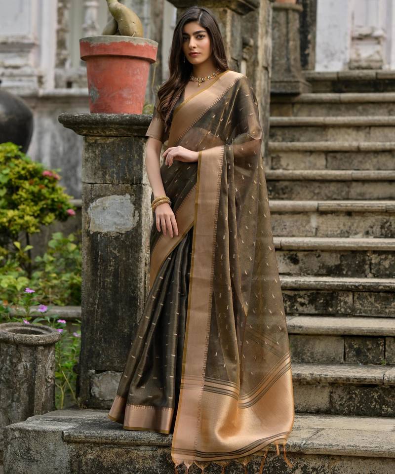 Coffee brown soft silk kalyani saree with small zari butties & broad zari border | traditional zari woven saree blouse