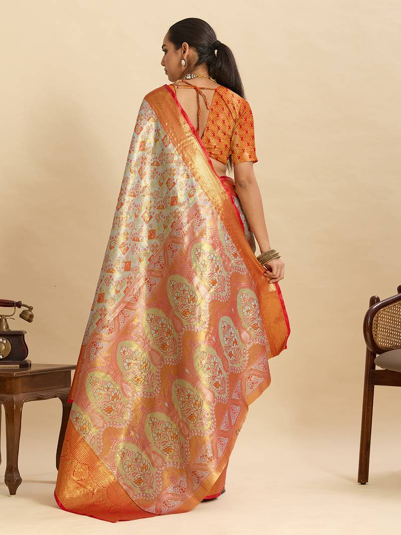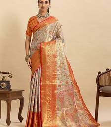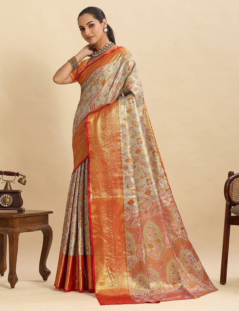 Grey traditional semi art silk zari weaving saree for wedding & festive look with blouse