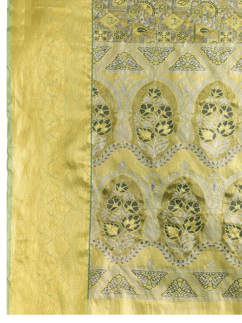 Light green traditional semi art silk zari weaving saree for wedding & festive look with blouse