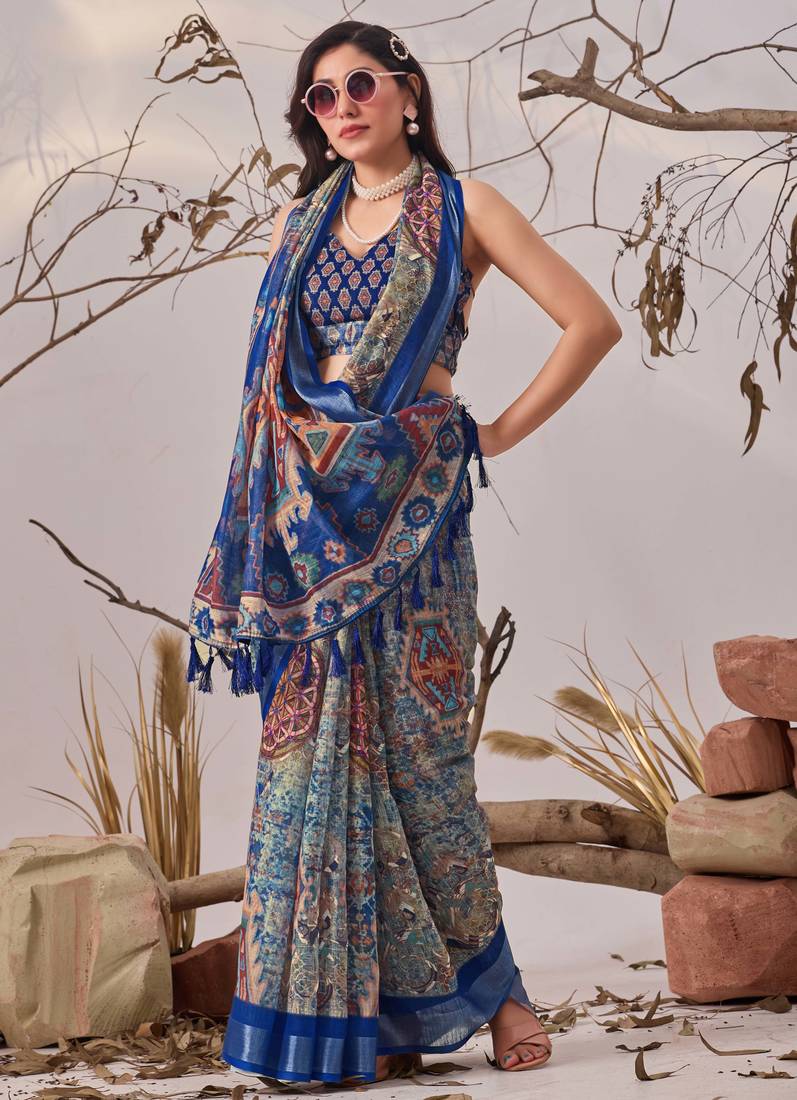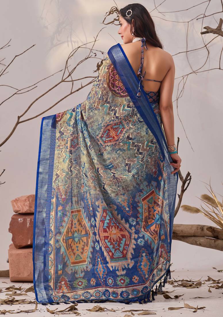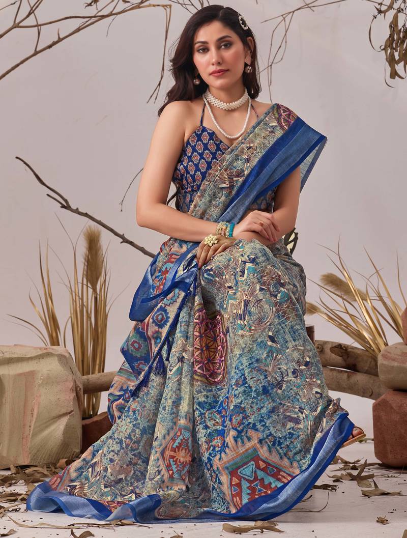 | Product Name | Navy Blue Linen Cotton Digital Patola Print Saree With Matching Blouse | |