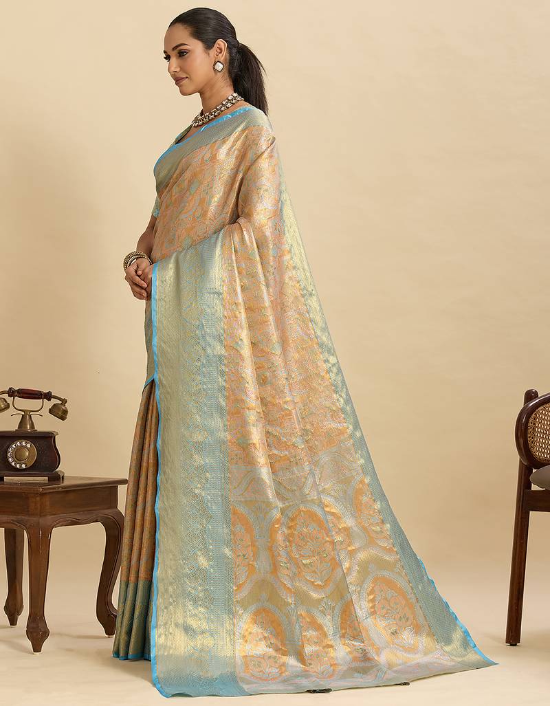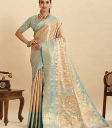 Peach traditional semi art silk zari weaving saree for wedding & festive look with blouse
