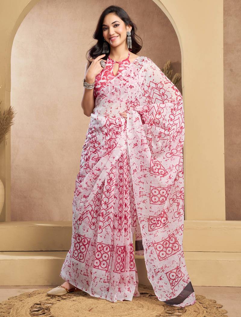 | Product Name | Pink Ready To Wear Linen Printed 1 Minute Saree With Unstitched Blouse – Lightweight Casual Wear Saree | |