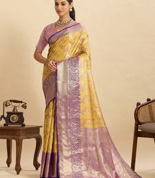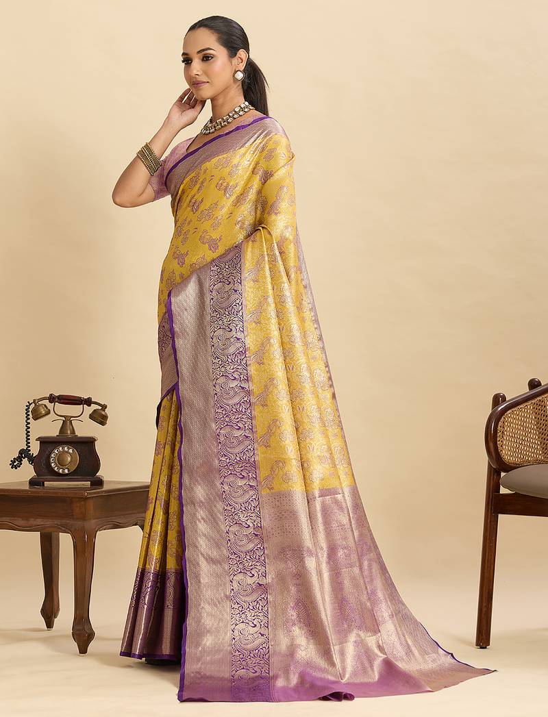 Yellow rich pallu zari woven semi art silk saree for wedding & festive occasions