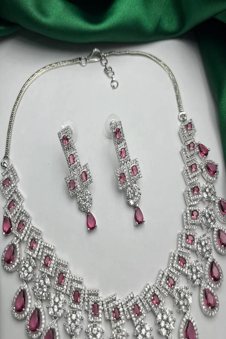 | Product Description | Dazzle In Elegance With This Ruby Red Bridal Necklace And Earrings Set, Designed To Bring Timeless Glamour To Any Look. This Stunning Jewelry Set Features Teardrop Ruby Stones Surrounded By High Quality Cubic Zirconia Crystals, Set In A Luxurious Silver Plated Finish. Perfect For Brides, Bridesmaids, And Party Wear, This Sparkling Necklace Set Adds Sophistication And Shine To Traditional Or Western Outfits. Whether You’re Attending A Wedding, Festive Event, Or Formal Occasion, This Handcrafted Piece Ensures All Eyes Are On You. |