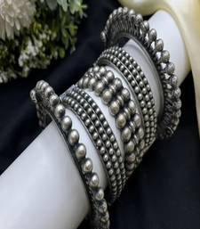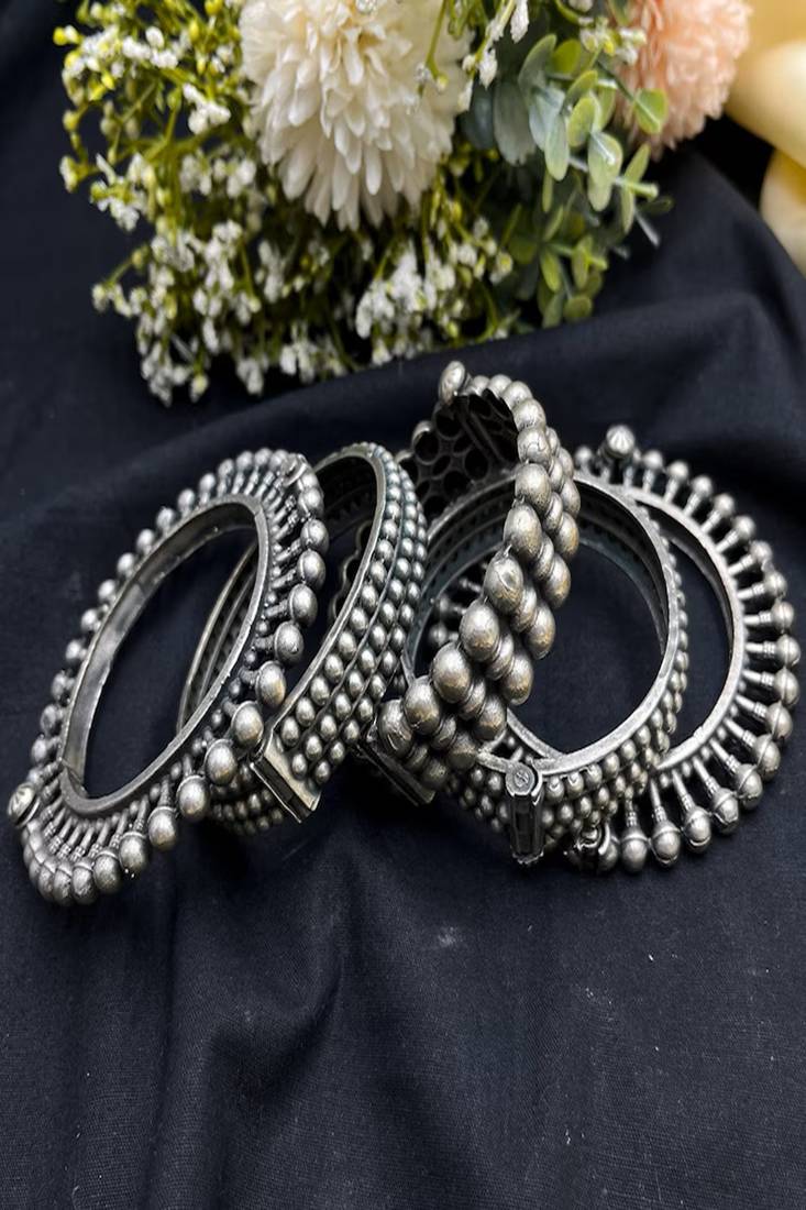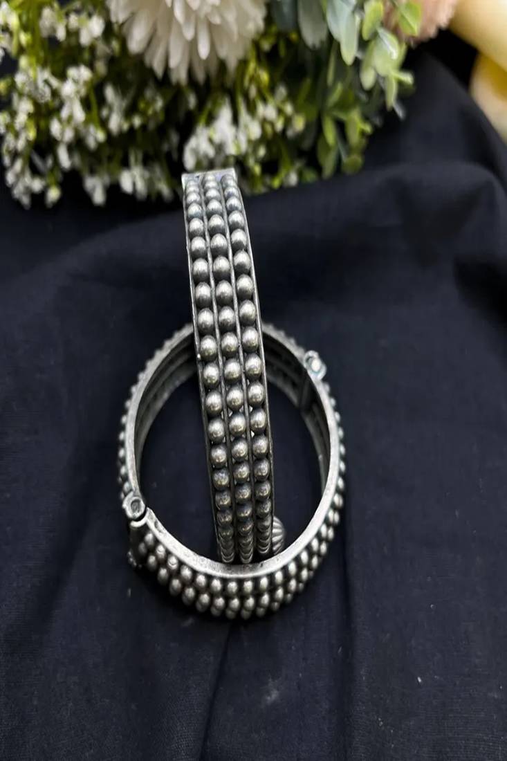 | Product Name | Oxidized Silver Look Tribal Kada Set | Ball Design Spike Wide Broad Statement Bangles | |