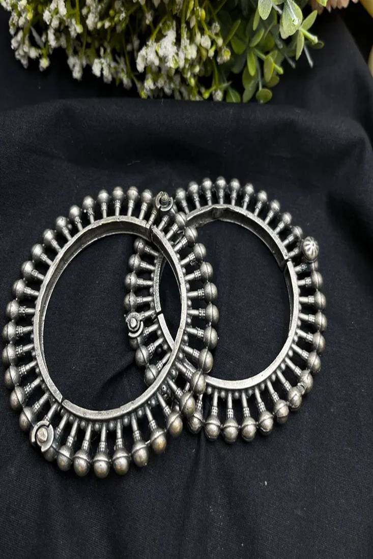 Oxidized silver look tribal kada set | ball design spike wide broad statement bangles
