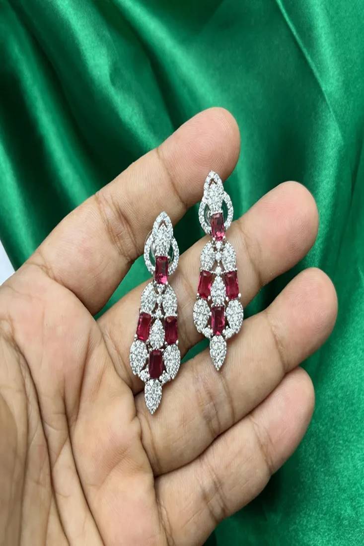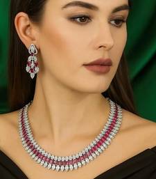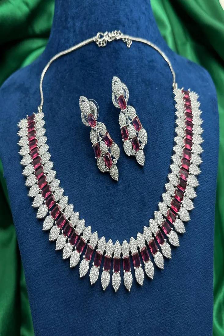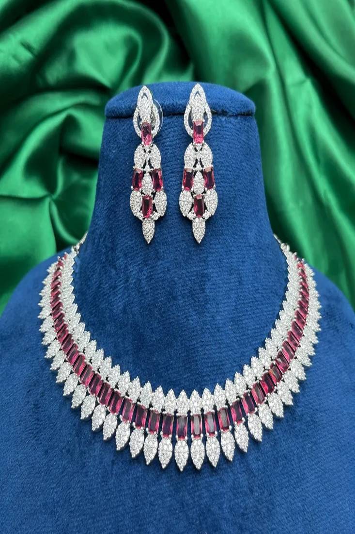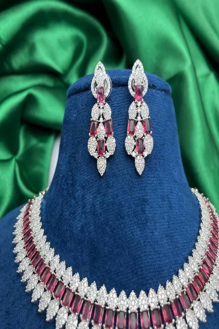 | Product Name | Ruby Cz Bridal Jewelry Set: Silver Choker Necklace & Dangle Earrings | |