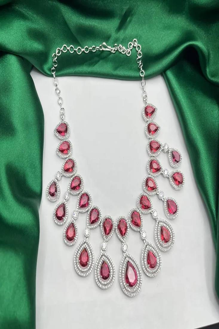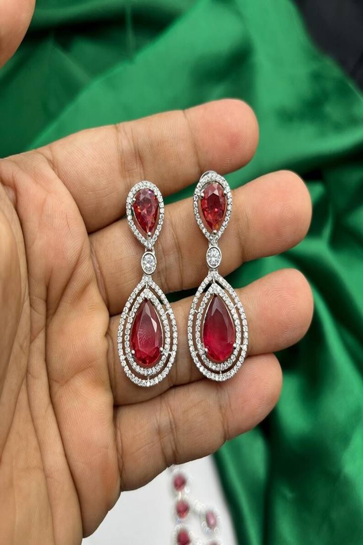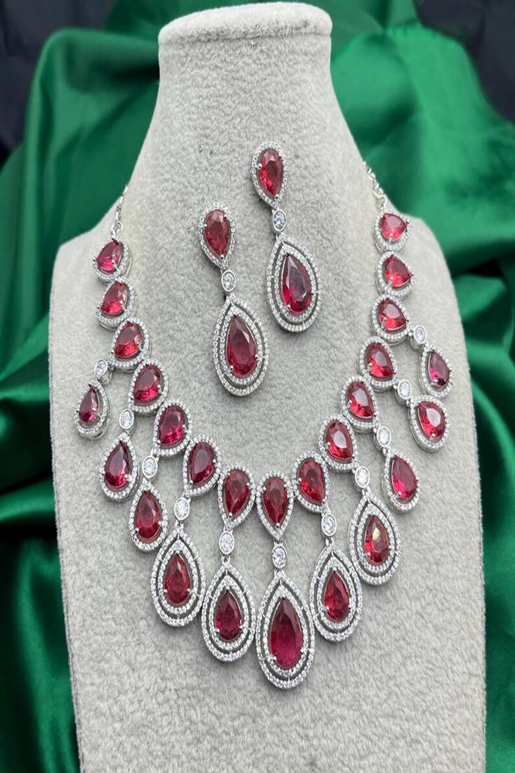 | Product Name | Ruby Red Teardrop Necklace & Earrings Set – Silver Cz Bridal Jewelry | |