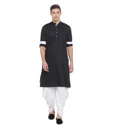 Black plain blended cotton dhoti-kurta