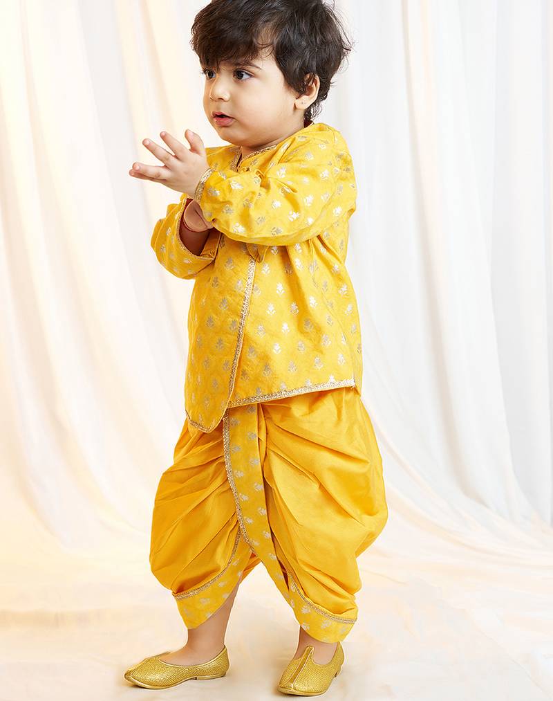 | Product Description | Premium Boys Ethnic Wear Kurta Set Featuring Beautiful Mustard Viscose Fabric With Intricate Jacquard Floral Patterns. Perfect For Festivals Like Janmashtami, Durga Puja, Navratri And Diwali. Complete Set Includes Kurta And Dhoti Pant. |