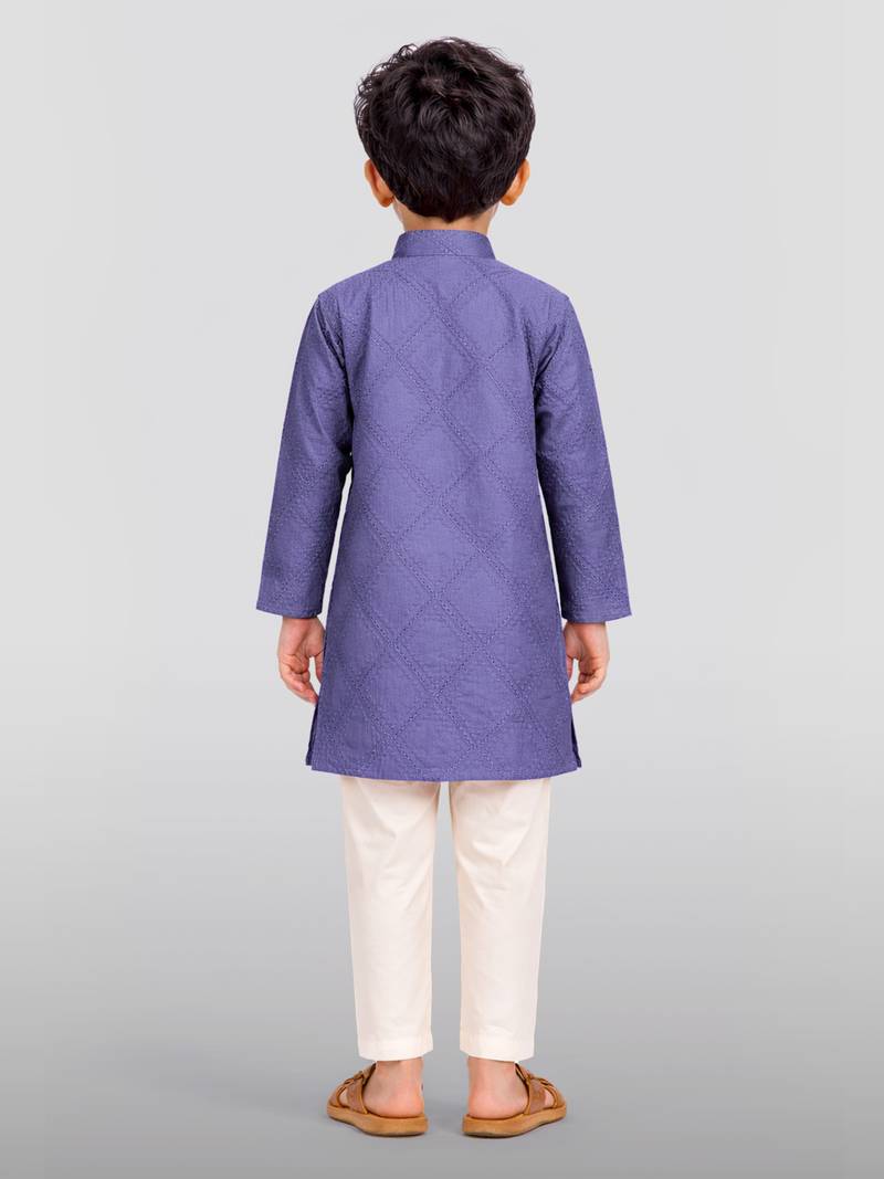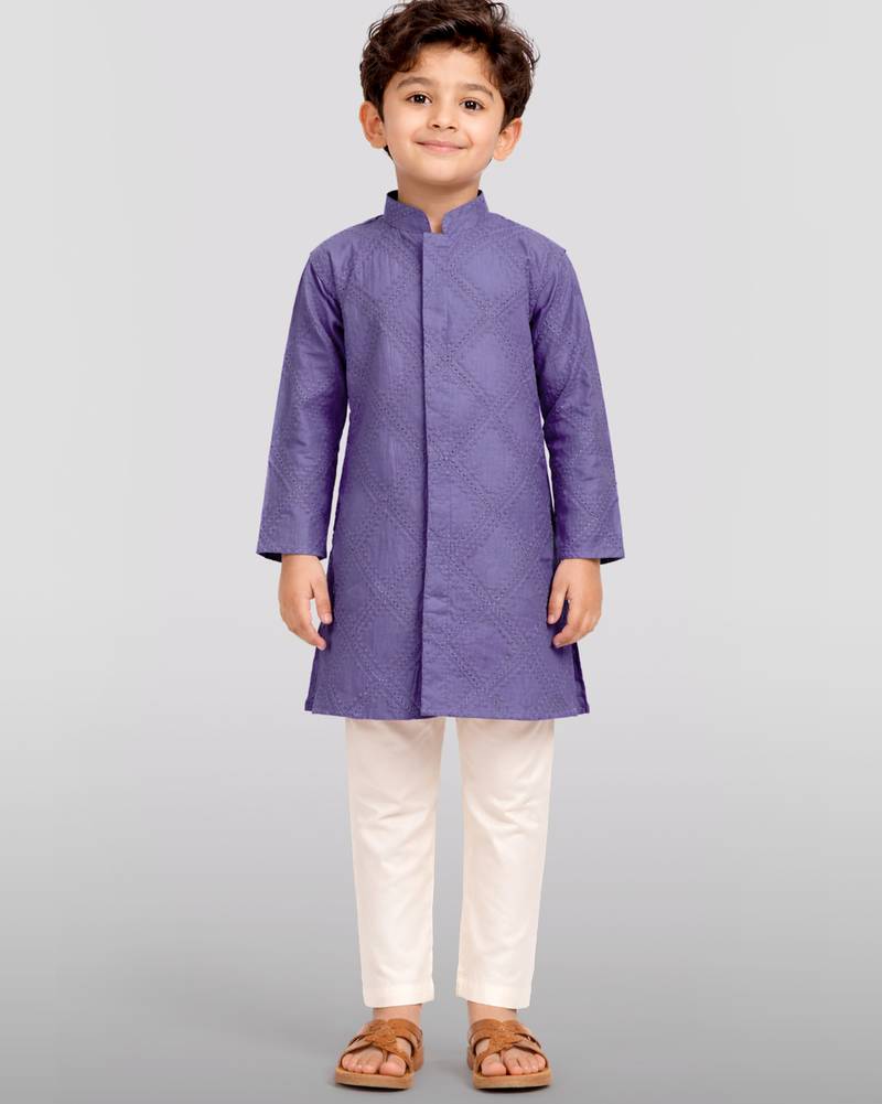 | Product Name | Boys Purple Hakoba Cotton Kurta Pyjama Set With Geometric Thread Embroidery | |