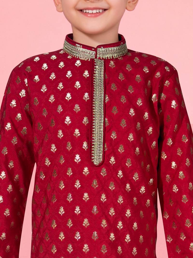 | Product Name | Boys Red Jacquard Silk Blend Kurta With Cream Pyjama Wedding & Festive Wear | |