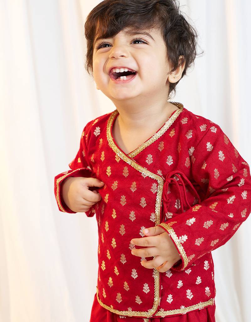 | Product Name | Kids Wear Boys Red Jacquard Kurta Dhoti Set Floral Print | |