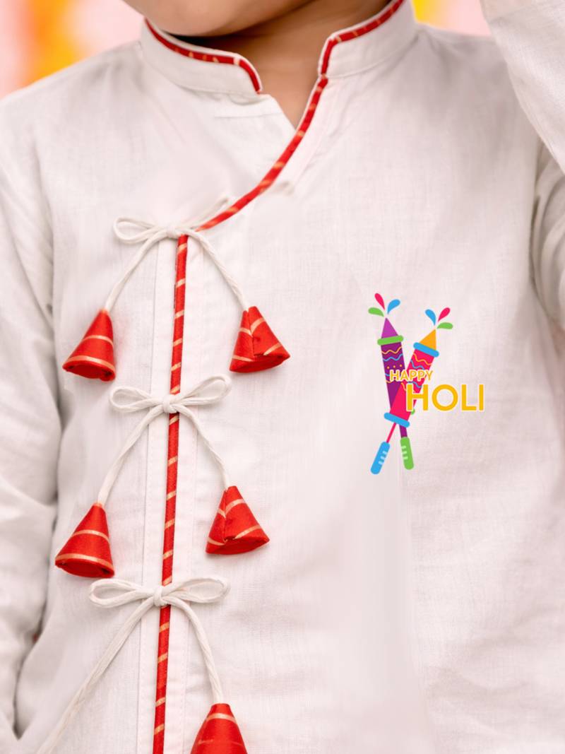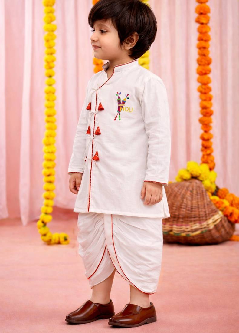 | Product Name | Kids Wear White Cotton Angrakha Kurta Dhoti Set Holi Edition | |