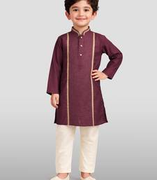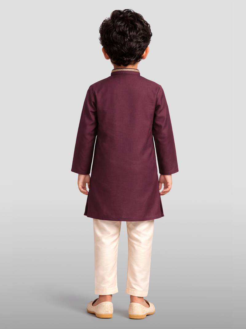 Boys wine modal chanderi zari embroidered kurta pyjama set
