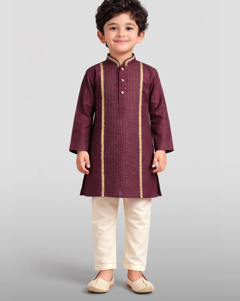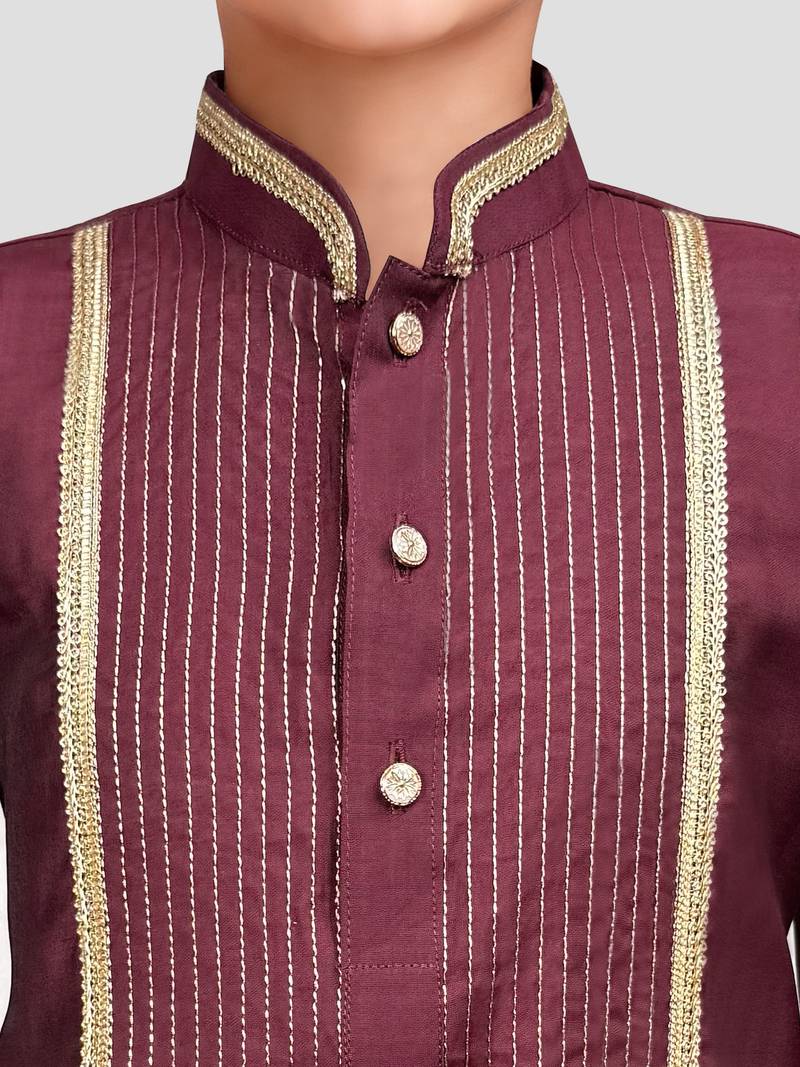 | Product Name | Boys Wine Modal Chanderi Zari Embroidered Kurta Pyjama Set | |