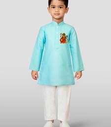 Cotton printed kurta set with pyjama for boys | aqua | navratri special