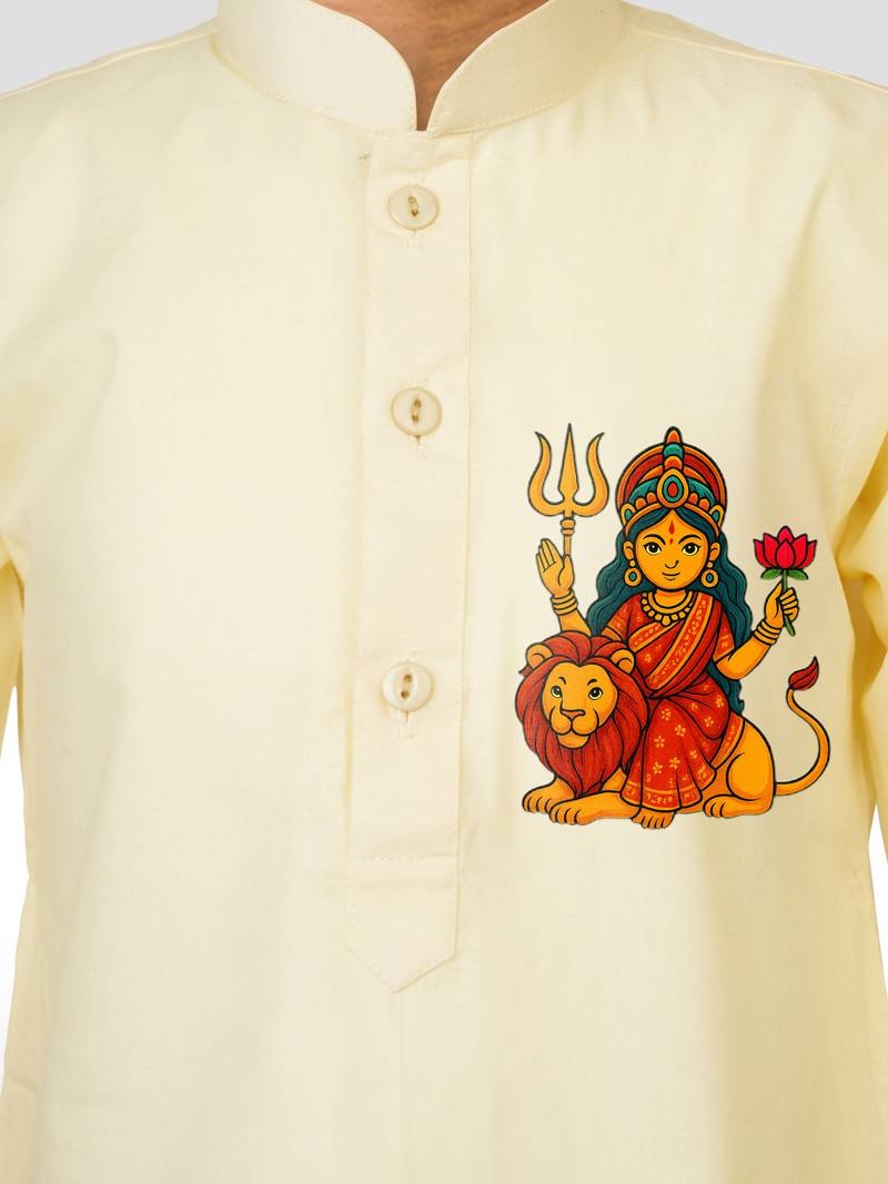Cotton printed kurta set with pyjama for boys | cream | navratri special