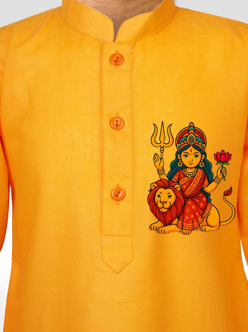 Cotton printed kurta set with pyjama for boys | orange | navratri special