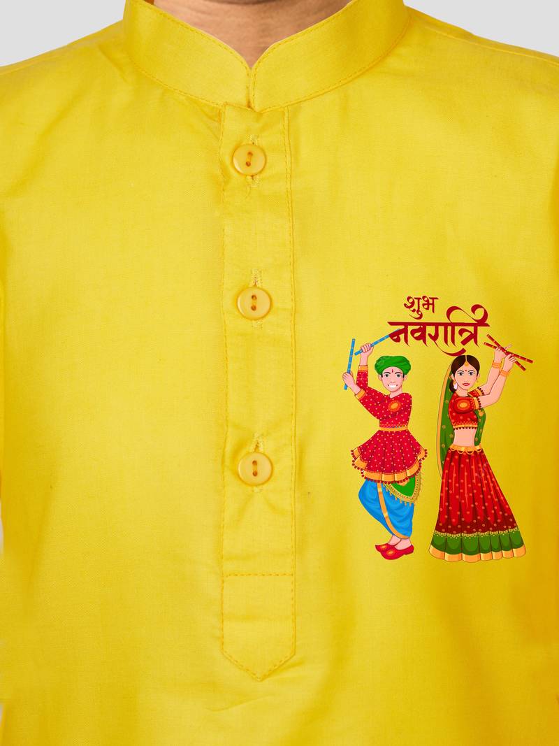 Cotton printed kurta set with pyjama for boyss | yellow | navratri special