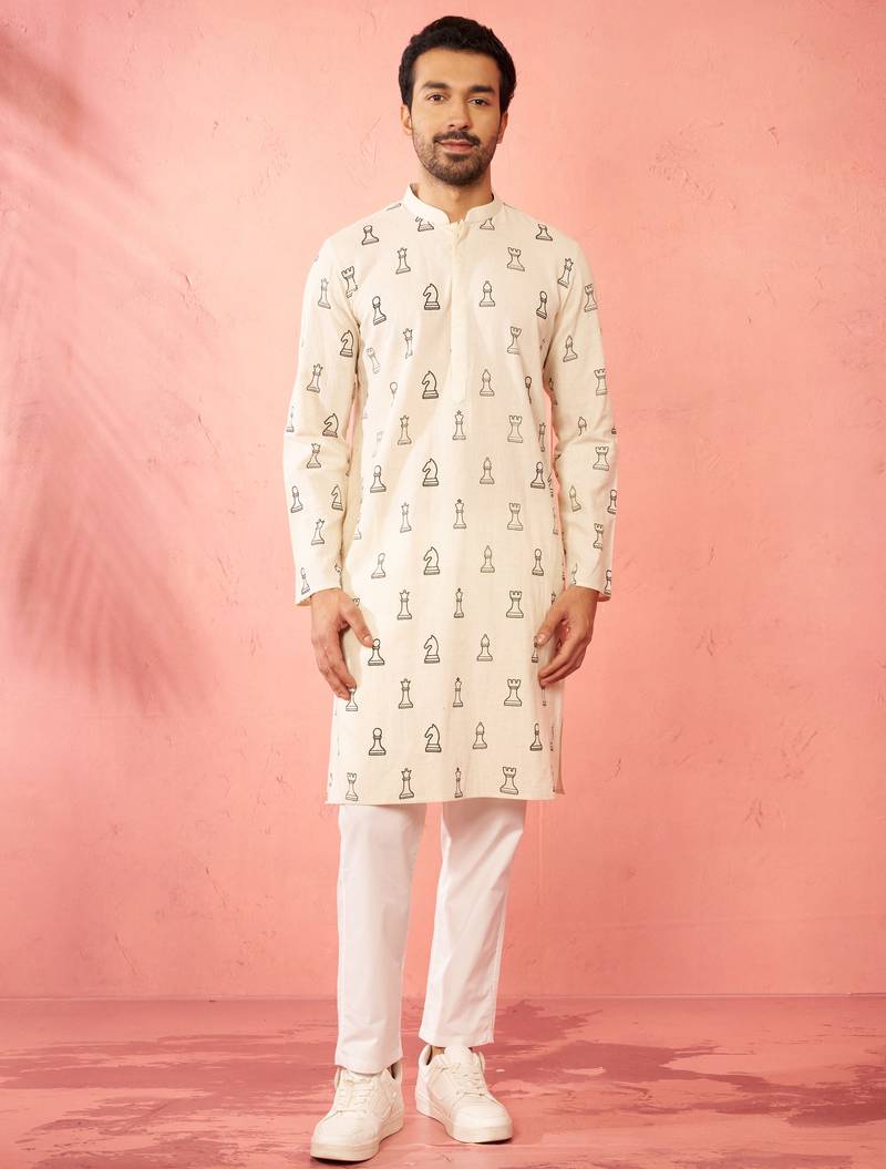 | Product Description | Add Contemporary Style To Your Wardrobe With Vastramay's Cream Cotton Kurta Featuring Unique Chess Print Design, Paired With Comfortable White Cotton Pyjama For Perfect Casual Ethnic Styling. | |