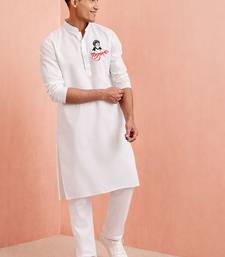 | Product Name | Creations Men's White Cotton Kurta Pyjama Set | Hanuman Jayanti Special Print | Festive | |
