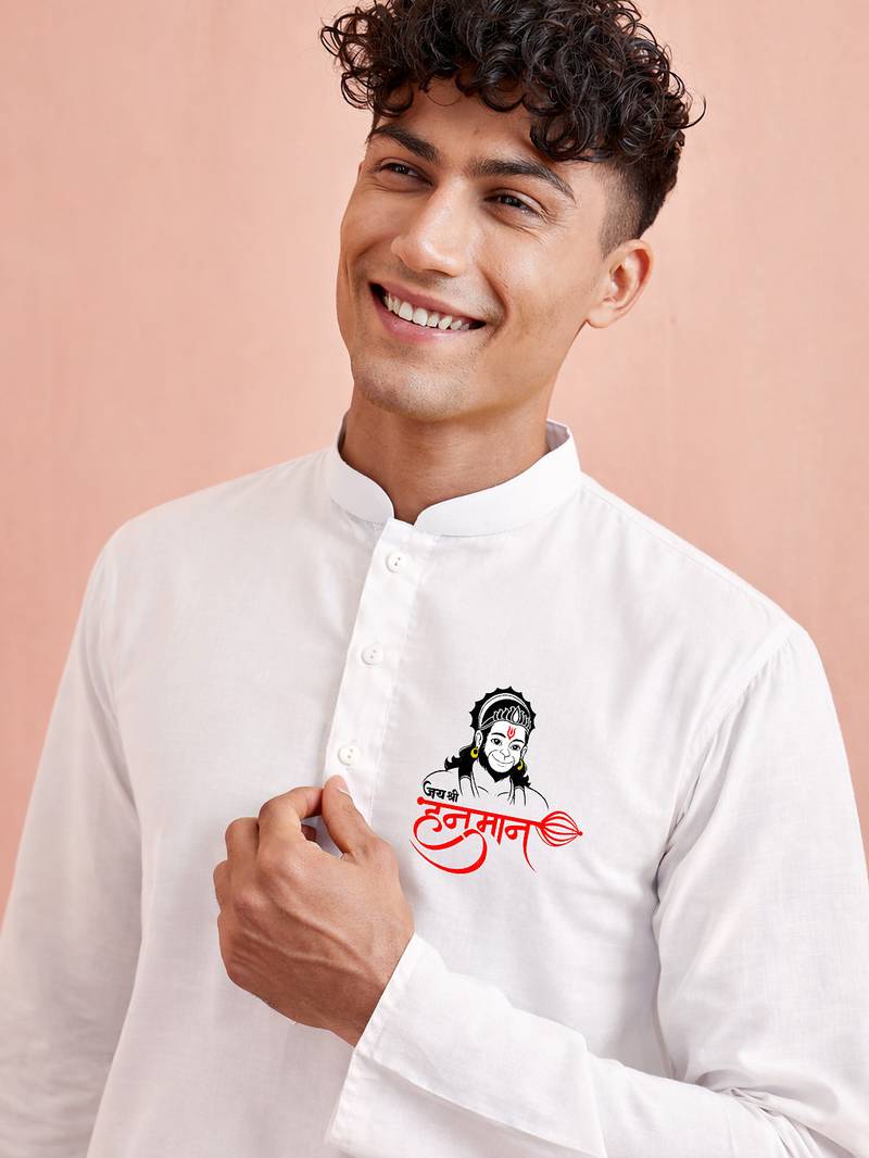 Creations men's white cotton kurta pyjama set | hanuman jayanti special print | festive