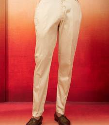 Men beige cotton lycra pants - versatile stretch bottom wear for all occasions