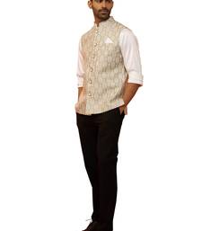 Men cream silk nehru jacket - premium jacquard ethnic contemporary festive wear