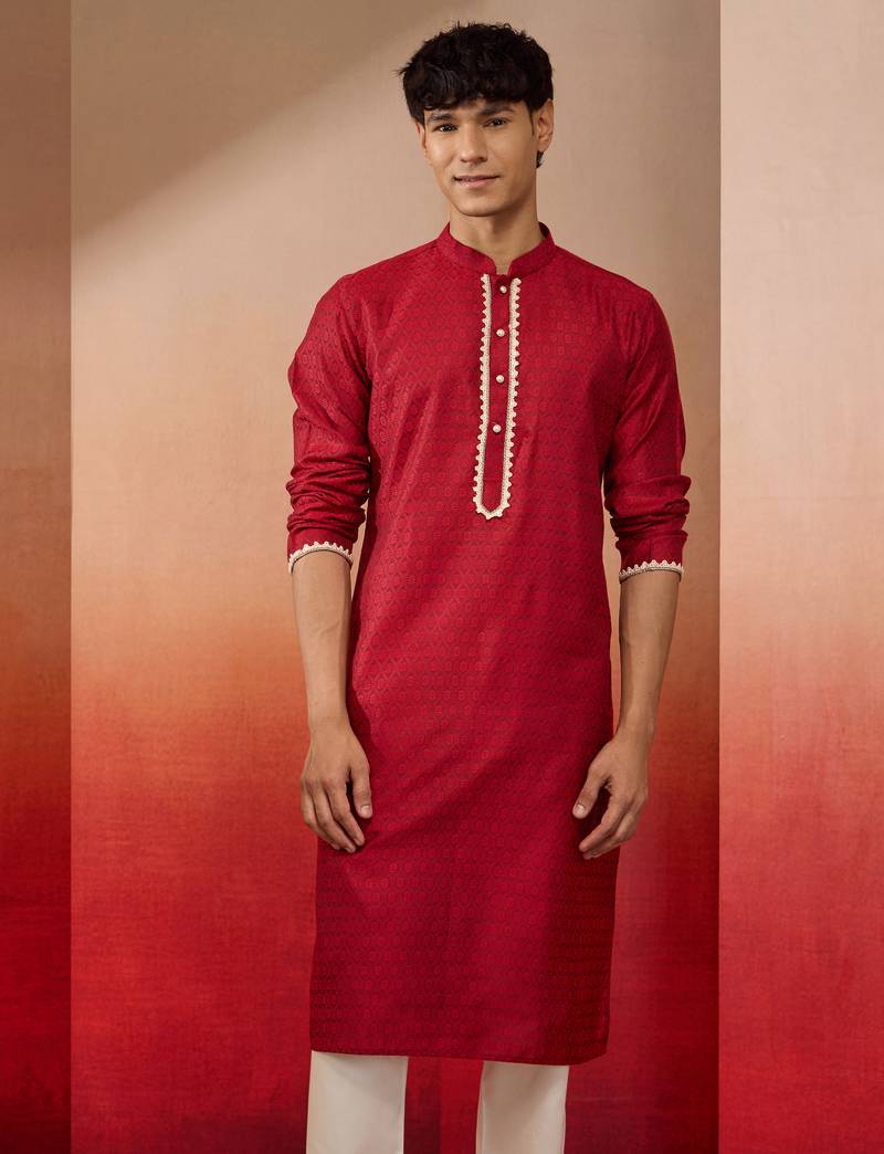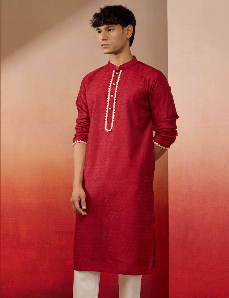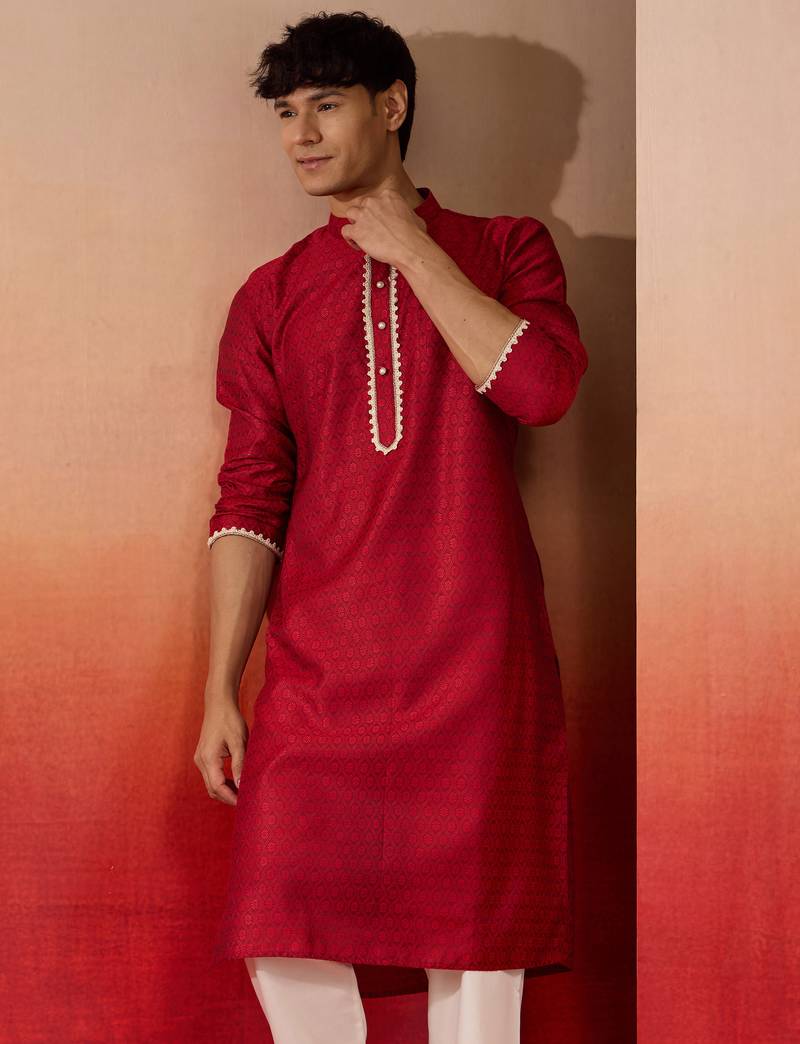 Product Name | Men Maroon Silk Jacquard Kurta Premium Floral Pattern Wedding Festive Wear | |